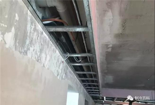 其中有制冷的管道,还有就是冷凝水排水的管道,这些管道都需要沿顶板下方的位置进行布置,一直串联到每一个分体机,也就是